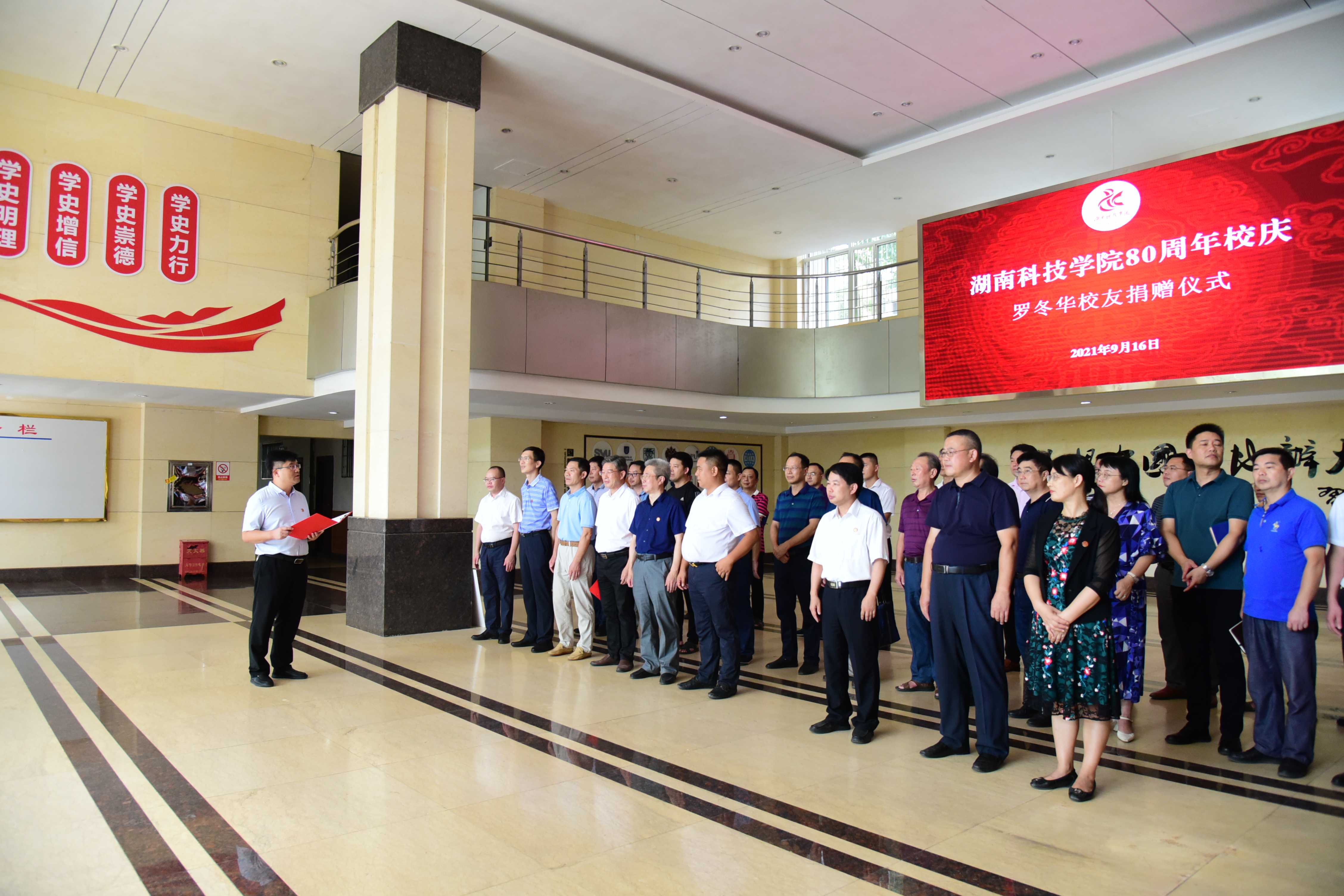 李钢代表学校全体师生向罗冬华表示热烈的欢迎,他表示,罗冬华校友克服疫情交通不便,带着深情厚谊回到母校,用实际行动表达对母校的真爱,虽受疫情影响,他依旧克服困难,为母校捐赠50万元,这是目前第一笔大额度个人校庆捐款,学校会铭记罗冬华校友的大力支持,将50万元资金用于校史馆建设。校史馆是学校办学思想不断发展的源泉,是学校文化建设的重要内容,是开展校史教育、爱校荣校教育的重要基地。希望全国各地的校友像罗冬华一样,积极响应九州在线网站80周年校庆捐赠倡议,迅速行动起来,为学校高质量发展添能蓄力。