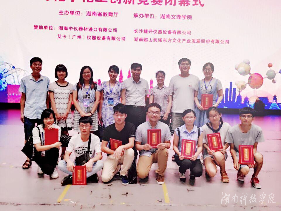 本网讯(通讯员 李文艺)7月26日上午,由湖南省教育厅主办的湖南省首届大学生化学化工创新竞赛在湖南文理学院举行。我校由袁霖、李中燕两位老师指导的学生薛克慧在比赛中脱颖而出,荣获大赛一等奖;由刘芳、王宗成两位老师分别指导的学生徐霞、彭延波均荣获二等奖;由罗小芳、李文艺两位老师分别指导的学生王钗、彭勇均荣获三等奖。