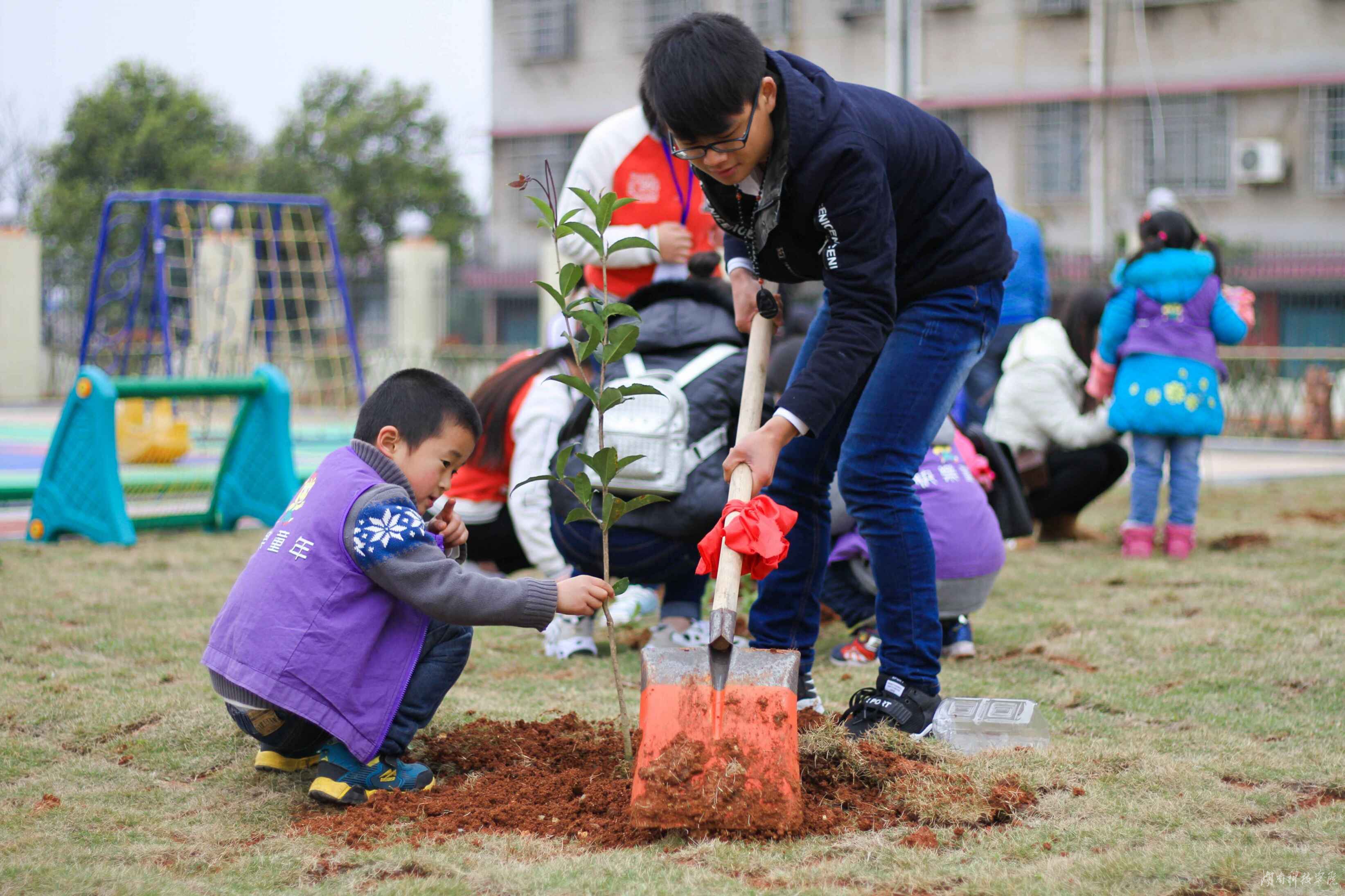 电子与信息工程学院服务团:携手科苑幼儿园小朋友共同植绿。时间:3月12日,地点:九州在线网站。