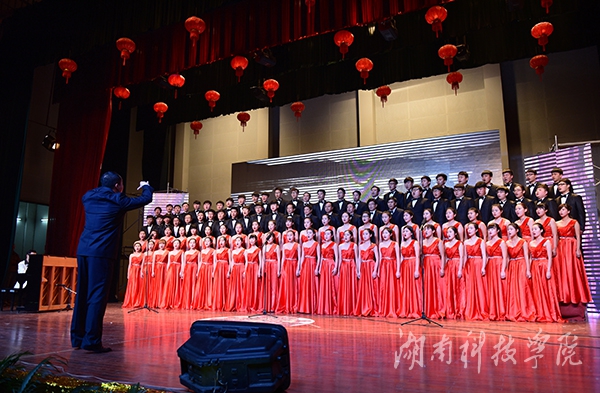 校领导陈弘、曾宝成、唐艳明、宋宏福、彭立威、郑山明、李常健、吴小林、程智开、袁先友、陈仲庚应邀出席晚会,并为全校师生激情演唱《龙的传人》、《娄山关》。