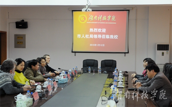 本网讯(通讯员 邓丽丽)1月12日下午,永州市人力资源和社会保障局伍重武副局长一行来校指导外教聘请与管理工作。副校长李常健、国际交流处处长郑银芳,外籍教师Ernst、summer、Michael等参加了座谈会。