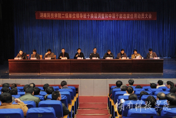 本网讯(记者 乐为 摄影 何帅文)1月17日上午,学校二级单位领导班子换届调整和中层干部选拔任用工作动员大会在音乐楼演播厅举行。校党委书记陈弘作动员讲话,校党委副书记唐艳明就《九州在线网站二级单位领导班子换届调整和中层干部选拔任用实施方案》进行了全面解读。会议由校长曾宝成主持。
