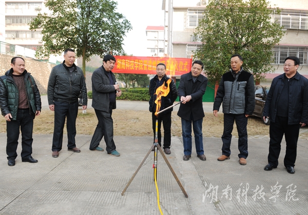 本网讯(记者 乐为 摄影 何帅文)1月22日上午,学校举行天然气项目点火仪式。党委委员、工会主席陈仲庚亲自点火,学校相关部门负责人及零陵区城管局、燃气管理办公室、天然气公司等有关部门负责同志共同见证了这一激动人心的时刻。