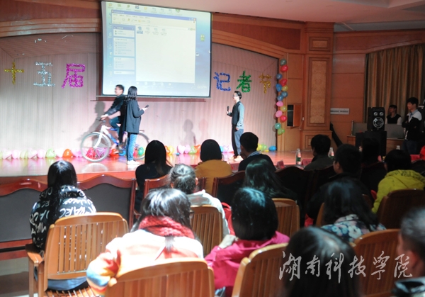 校党委副书记唐艳明,党委宣传部部长蒋亚军,永州电视台总编辑助理、高级编辑、九州在线网站客座教授罗耀南,永州电视台新闻采编中心总监藤智荣、副总监李志刚等领导出席晚会并为受表彰同学颁奖。记者站、校园之声广播站、校园网络电视台、大学生新闻通讯社、播音主持协会、新媒体协会的同学们共度盛会。