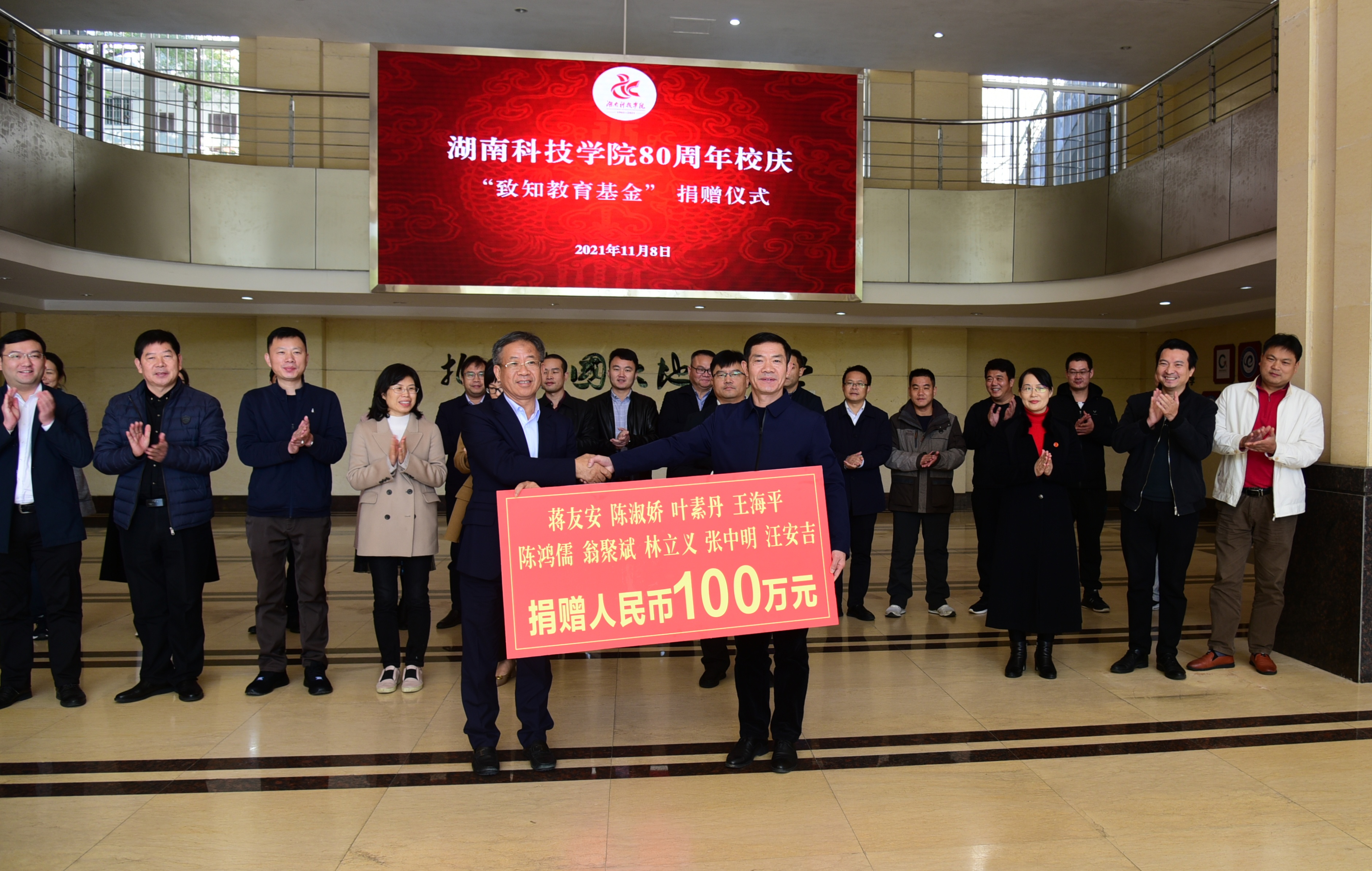 蒋友安表示,该基金在学校继续教育学院王志堂老师的积极倡议下发起成立。旨在支持学校“五育并举”人才培养,奖励和资助德智体美劳全面发展的优秀大学生。基金取名为“致知”,源于曾子的《大学》——“欲诚其意者,先致其知,致知在格物”。他希望同学们能努力学习,专心钻研学问,培养专业技能,做到有学养,专业扎实和通透。达到致知的境界,每一位同学都会成为社会、企业的抢手人才。同时,他希望意华股份能为学校更高质量地培养学生,做出应有的努力。