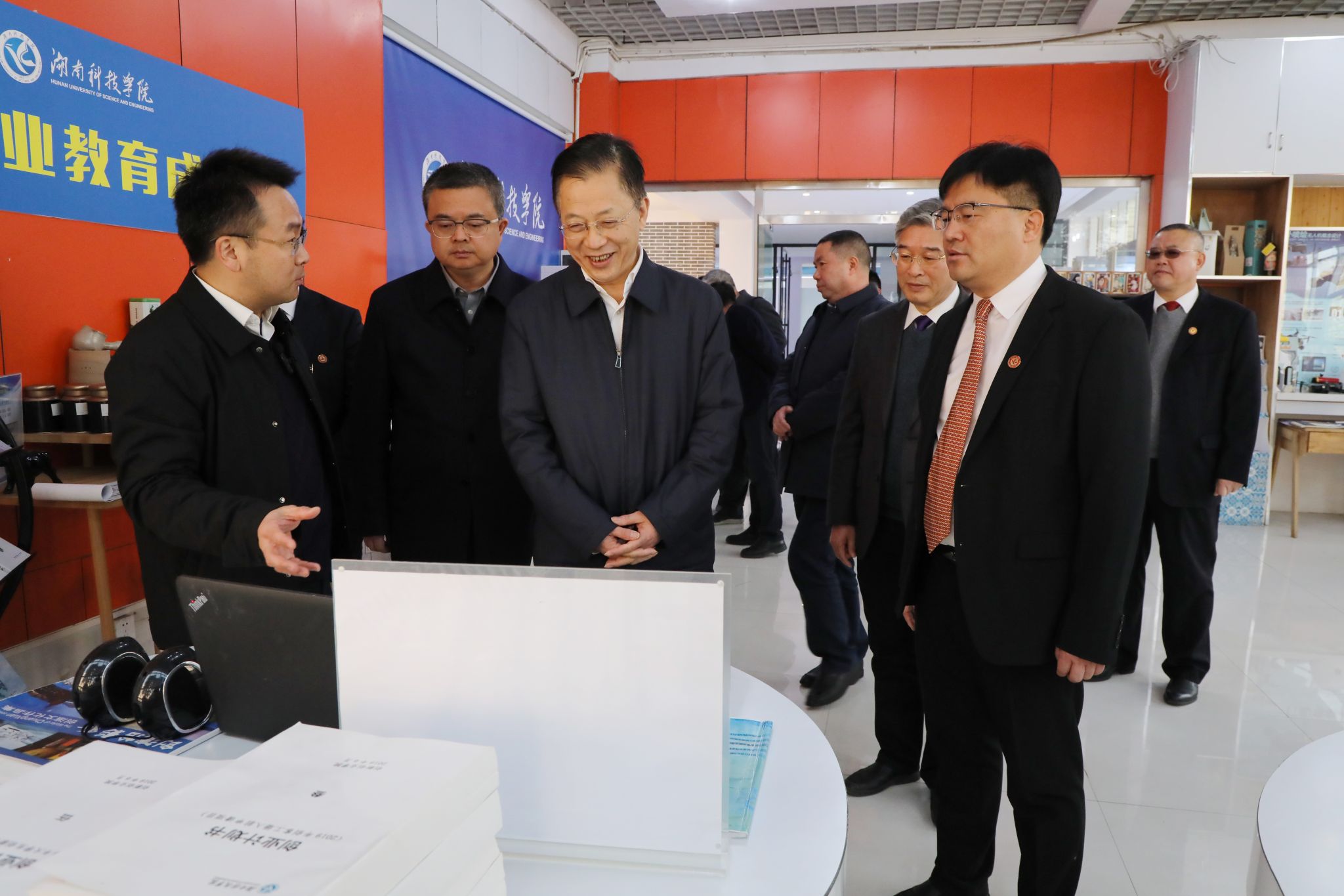 夏智伦一行实地考察了我校工程实训中心、航空模拟舱、砖石质文物智慧化保护利用技术湖南省重点实验室、国家级众创空间等地。