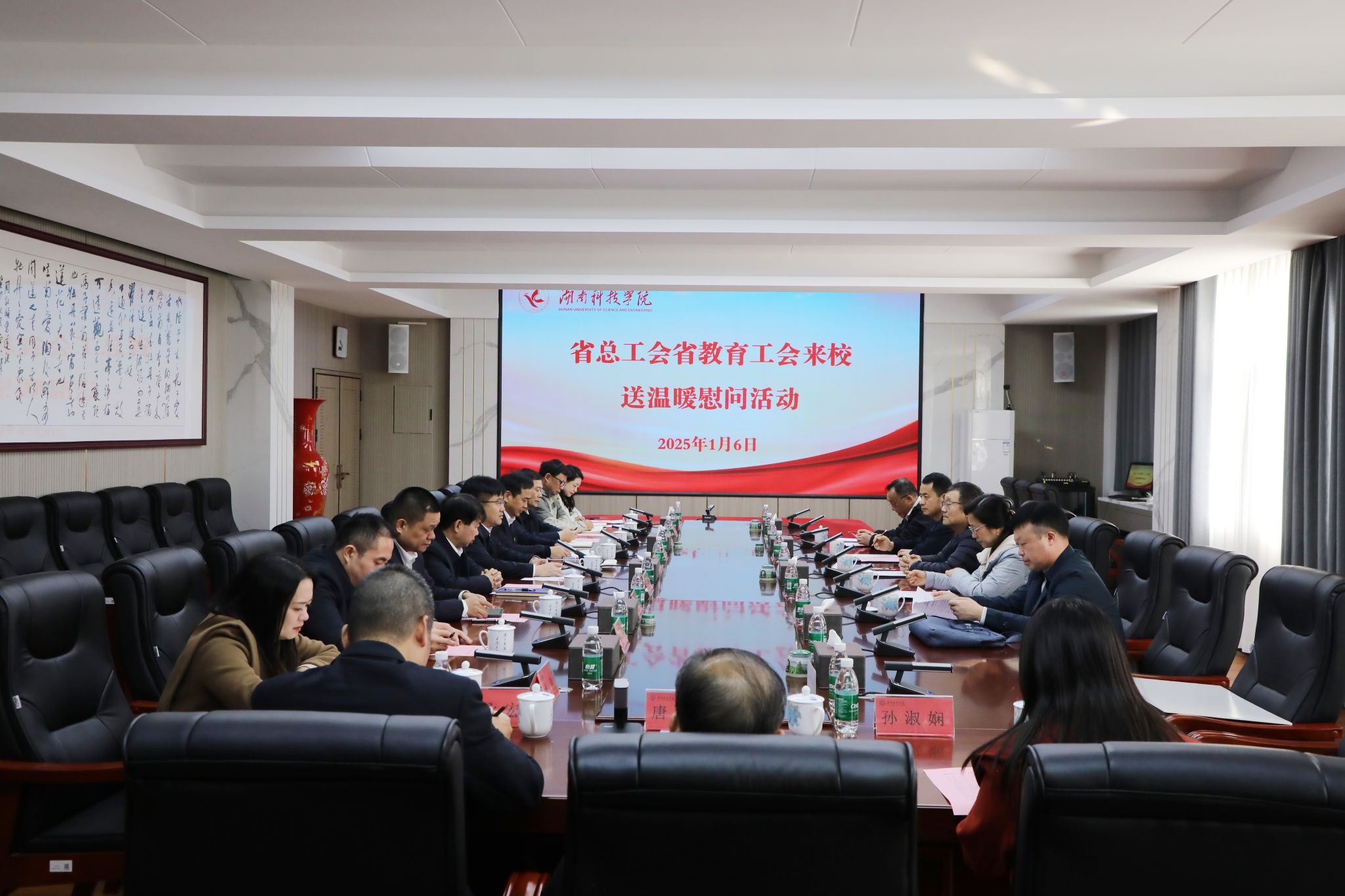本网讯(记者 孙淑娴 摄影 谢志豪)1月6日,省总工会党组成员、省教育工会主席刘湘凌一行来我校开展“两节”送温暖慰问活动,省教育工会副主席邓曼,市总工会党组书记、副主席乐家茂等人陪同参加。校党委书记李钢、校长黄创霞、副校长李常健、原副校长吴小林等参加座谈会。