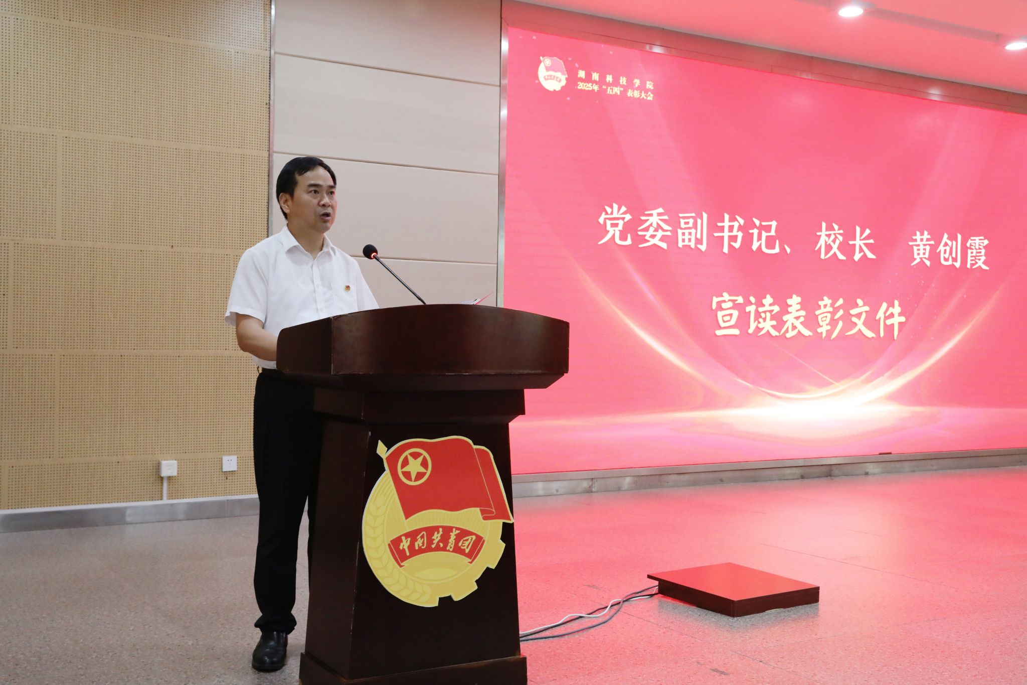 党委副书记、校长黄创霞宣读了2024年度团内先进集体和优秀个人的表彰决定。传媒学院团总支、文法学院雷紫翔等一批先进集体和个人受到表彰。