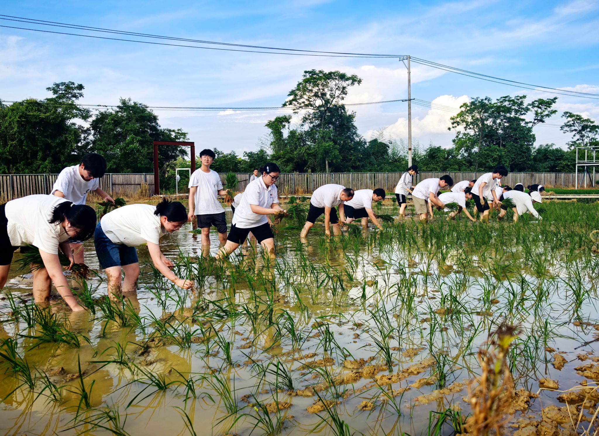 “插秧时注意‘浅、直、稳、匀’,行距保持一拳宽,秧苗要‘浅插不浮苗’……”在稻田实践区,有着丰富农事经验的老师一边示范插秧动作,一边讲解水稻种植与生态保护知识。大学生们手持秧苗,在老师手把手指导下逐渐掌握技巧,为水田披上嫩绿“新装”。外国语学院商英2401班赵威星同学感慨道,“通过田间实践劳动,才更深刻体会到‘粒粒皆辛苦’的重量。”