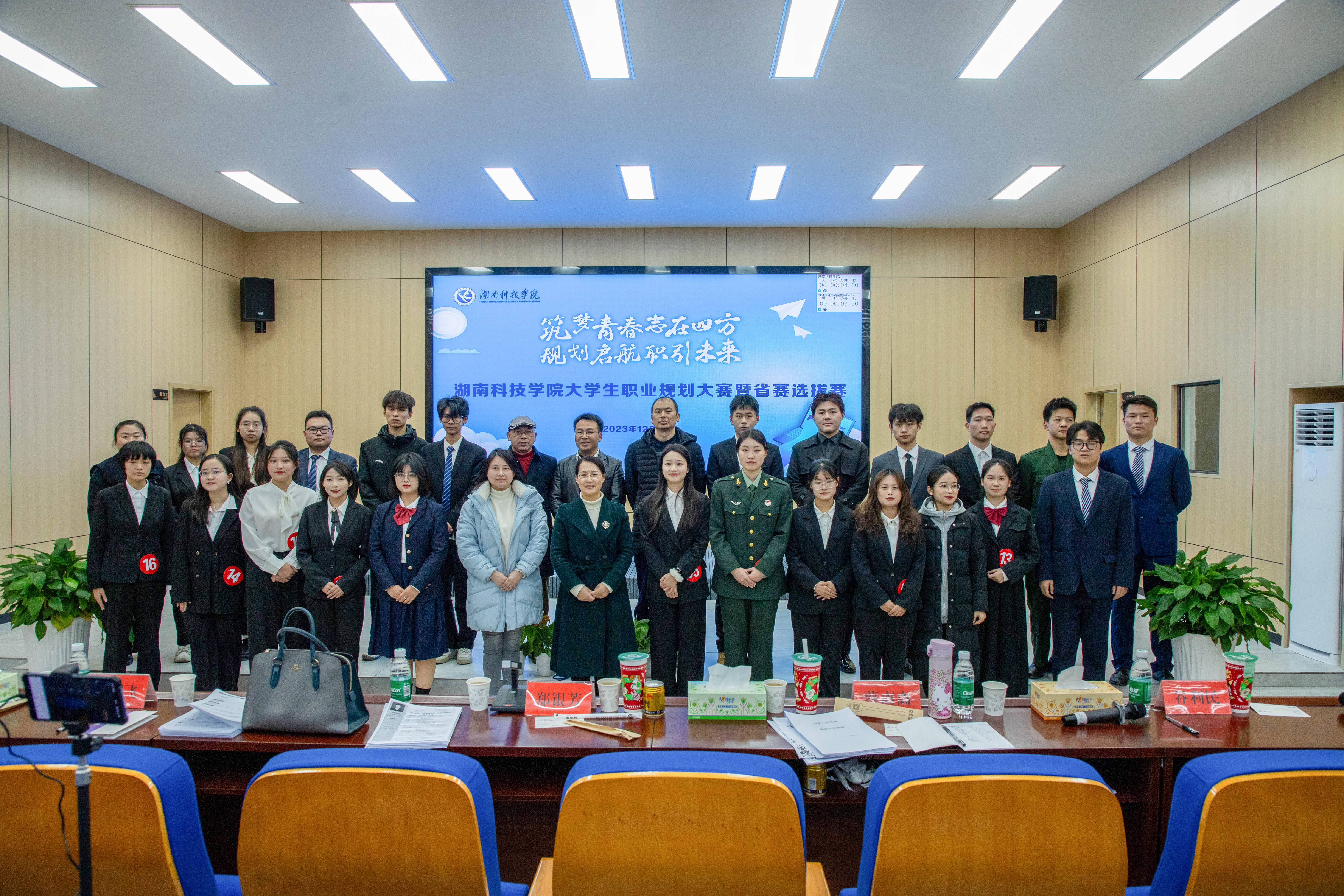 本网讯 为贯彻落实党中央、国务院关于高校毕业生就业创业工作的决策部署,进一步增强同学们的职业规划意识,引导大家树立正确的成才观、就业观,科学合理地规划大学学习与生活,提高就业技能与实践能力,12月27日,大学生职业规划大赛决赛省赛选拔赛在明德楼顺利举行。副校长郑银芳,湖南省人社厅、商务厅就业创业专家、国家高级职业指导师蔡离离,湖南兵器建华精密仪器有限公司人力资源部部长欧柳飞以及学生工作部、招生就业处等相关职能部门负责人出席活动。