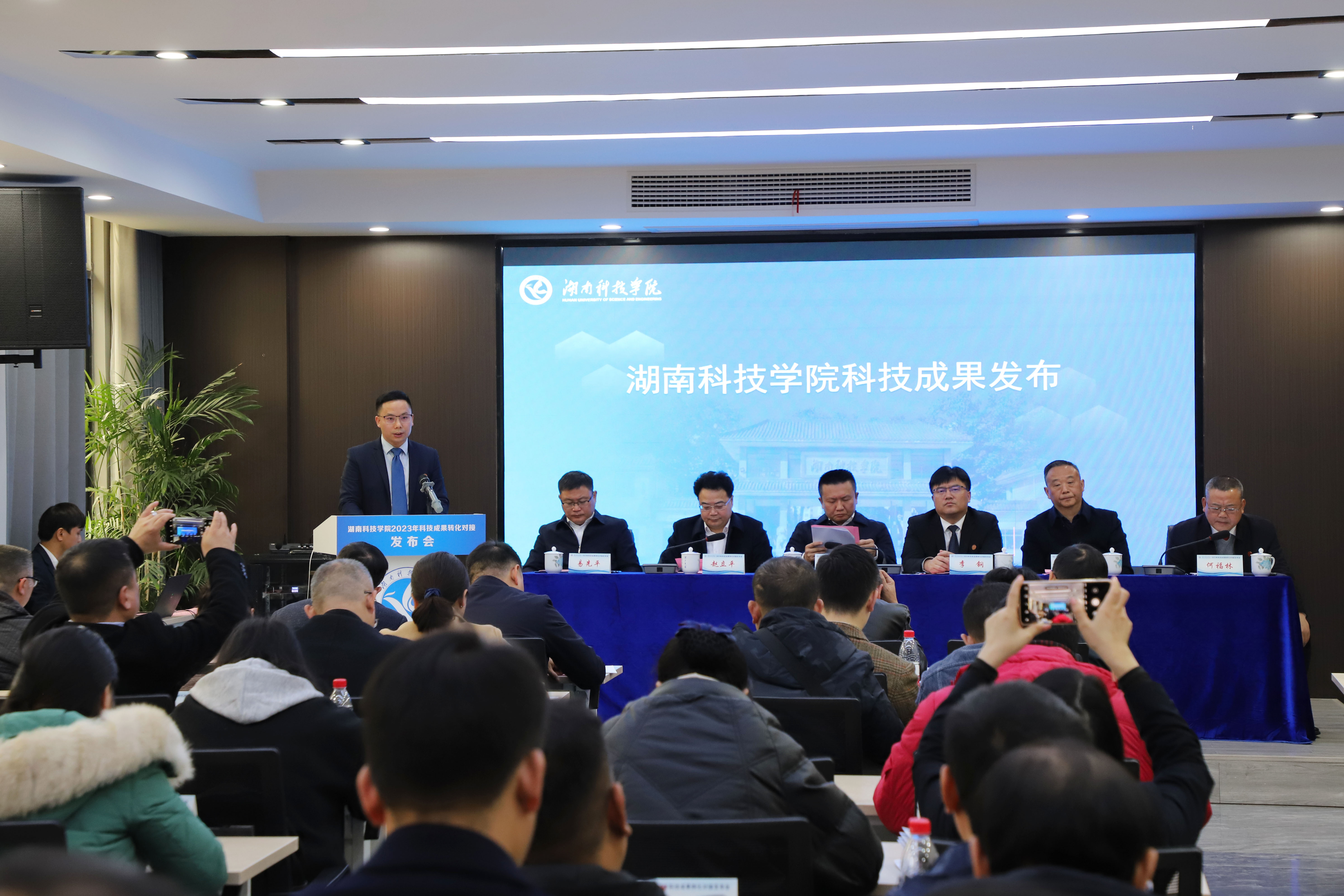 会议现场,学校发布发明专利50件,并就2023年科技转化情况做了相关介绍。据了解,学校对接恒伟公司开展银杏系列产品开发取得突破性进展,帮助企业进一步开发出以银杏叶提取物为主要成分的心脑血管疾病治疗产品血络通胶囊。服务永州中古生物技术有限公司项目,以自合成生物多肽为研究对象,通过生物化工、分子生物学等技术开展生物多肽绿色智造及新产品开发应用研究,联合申报并立项国家重点研发计划项目1项,授权发明专利7项(其中美国发明专利6项),发表SCI论文5篇,开发了“创面修复水凝胶、止血海绵”等新产品,创新了自合成生物多肽新应用方向。服务湖南金箭新材料科技有限公司项目,指导金箭公司荣获湖南省企业技术中心、国家级专精特新“小巨人”资质;公司董事长成功入选湖南省科技厅“三尖”人才科技创业领军人才;企业成功参与“纳米碳酸钙”行业标准的修改。