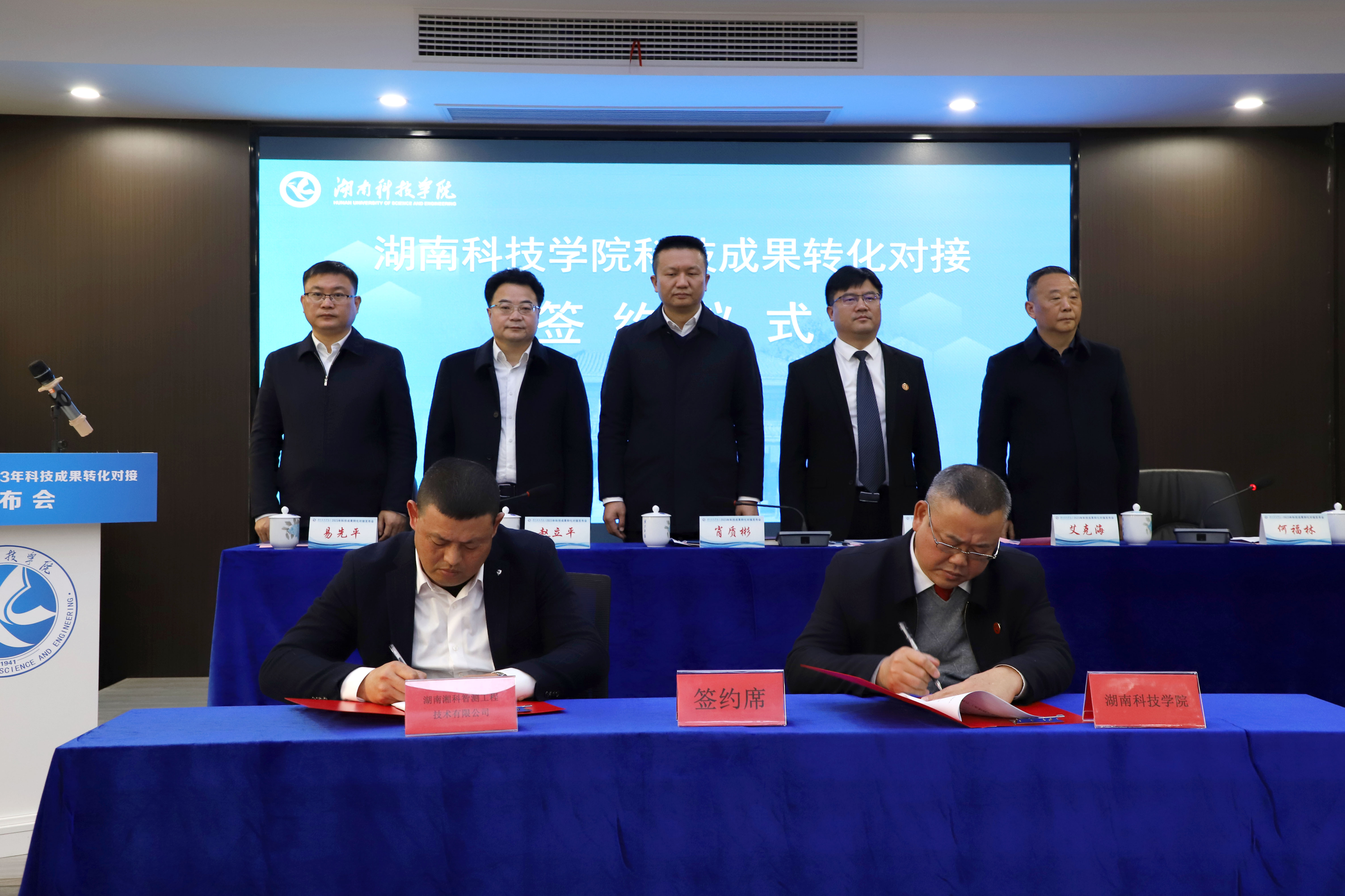现场举行了科技合作和成果转化签约仪式,学校分别与零陵高新技术产业开发区管理委员会、湖南德诺贝莱健康产业有限公司、湖南湘科智测工程技术有限公司、湖南雷叔叔油茶有限公司现场签约。