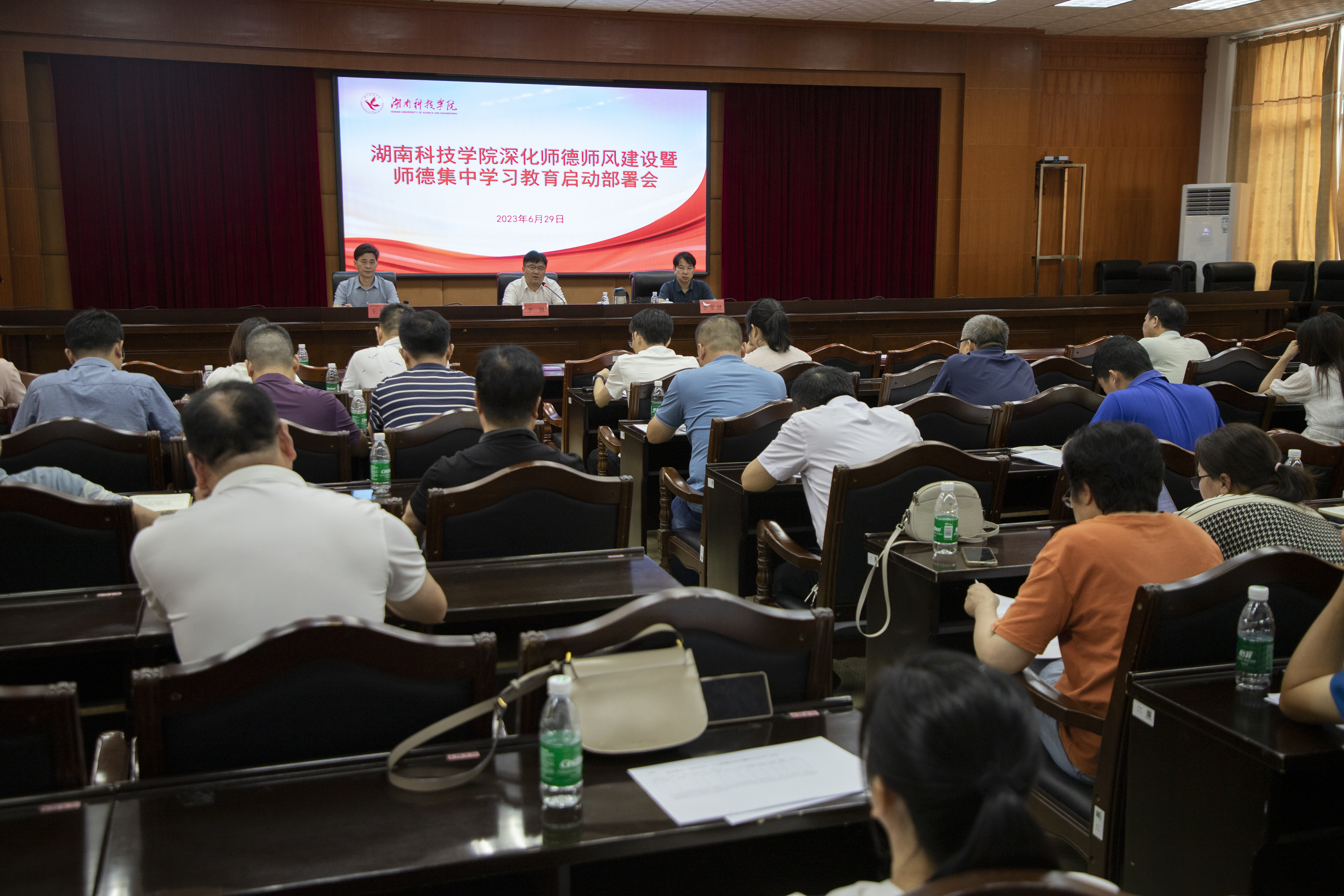 本网讯 为全面落实教育部师德师风建设工作推进暨师德集中学习教育活动相关文件和湖南省相关工作启动部署会精神,6月29日下午,学校召开深化师德师风建设暨师德集中学习教育启动部署会,扎实推进师德师风建设,引导广大教师不忘立德树人初心,牢记为党育人、为国育才使命。校党委副书记、校长李钢,副校长李常健出席会议。
