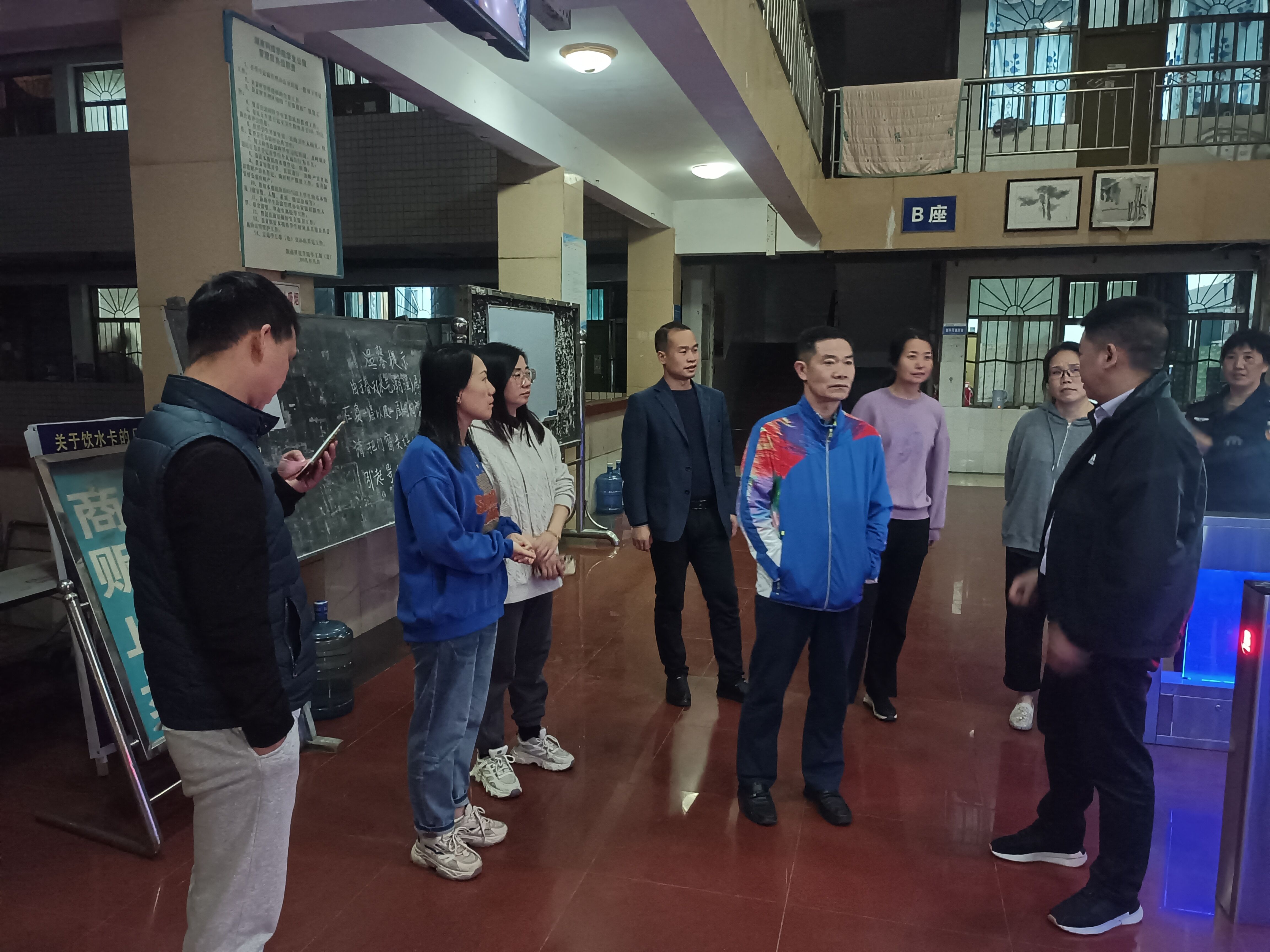 本网讯 4月29日晚,党委委员、副校长吴小林带领学工部、各教学学院党总支副书记开展校园安全巡查及调研工作。