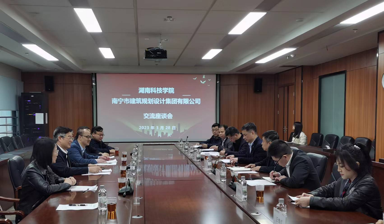 3月28日,宋宏福带队到南宁市建筑规划设计集团有限公司进行交流座谈,集团公司党委书记、董事长韦文学,党委副书记、董事赵钢,党委委员、董事、副总经理曾令勇及集团相关部门负责人参加座谈调研。双方围绕毕业生就业、在校学生实习、校企联合申报南宁市工程研究中心、科技项目研发与成果转化合作等具体事宜进行了广泛的探讨。下一步,双方将进一步凝聚共识,深入细化合作内容,在互利共赢中实现更大更好的发展,开拓校地校企合作双赢新局面。