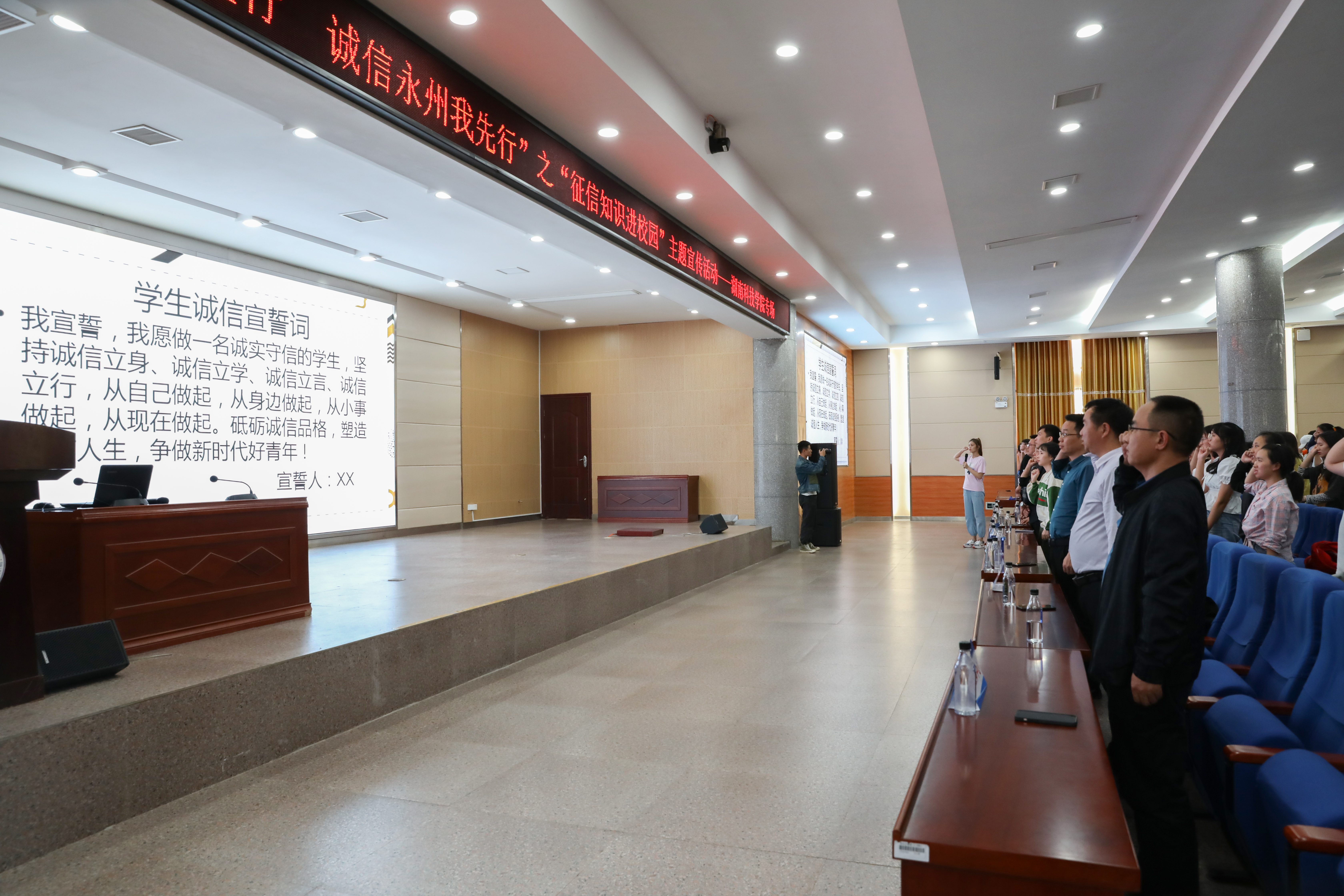 本网讯(实习记者 黄彩燕 周芳梅 周欣怡)为全面推进永州市全国社会信用体系建设示范城市创建工作,11月18日,由中共永州市委宣传部、中国人民银行永州市中心支行、永州市行政审批服务局主办,学校与中国银行永州分行联合承办的“诚信建设万里行,诚信永州我先行”之“征信知识校园行”主题宣讲活动九州在线网站专场在潇湘大讲堂举行,学校600余名学生到场聆听。