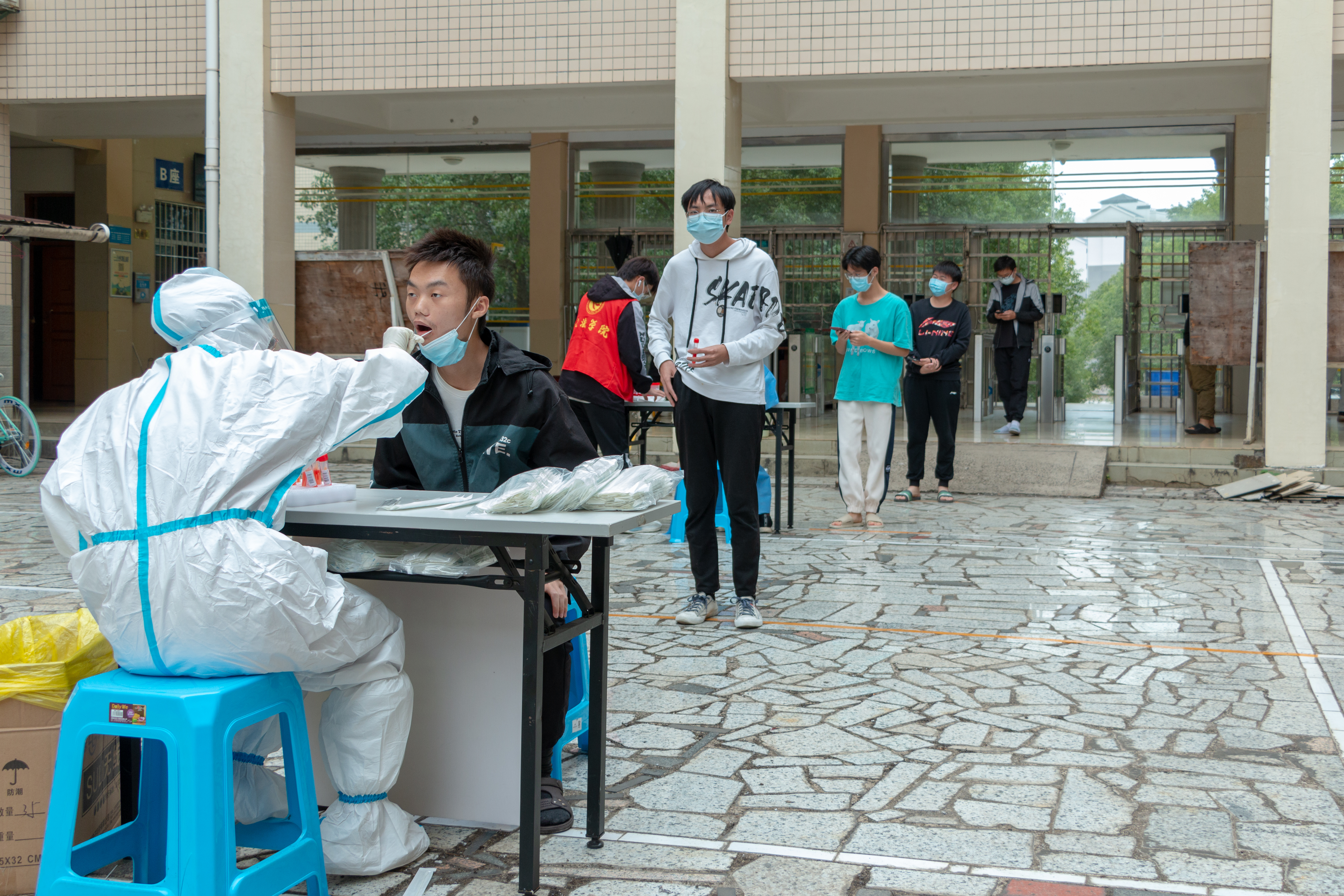 为确保核酸检测工作有序进行,防止人员过度聚集,学校综合考虑各方面因素,在每栋学生宿舍大厅为学生设置核酸检测点,在桂园风雨球场、训练馆旁门球场等区域为教职员工、住校家属设置核酸检测点,在体育馆为黄码人员设置核酸检测点,并成立由学工部、资产处、人事处、后勤服务中心、各楼栋长、层长、学生志愿者组成的工作专班,有序组织在校师生分时段、分批次进行错峰检测,最大限度减少等待的时间。