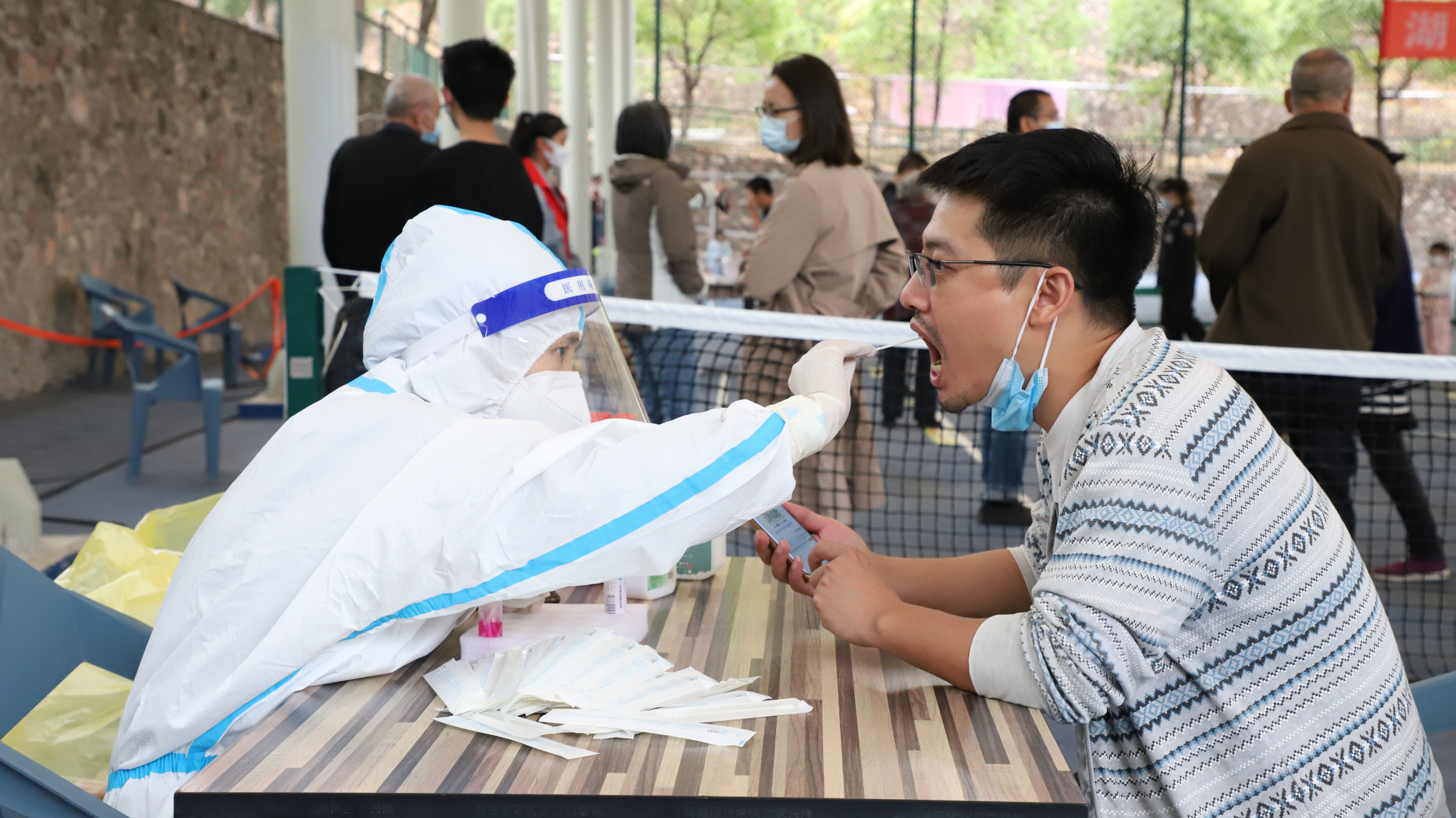 一个个身穿白色防护服的医护工作者
