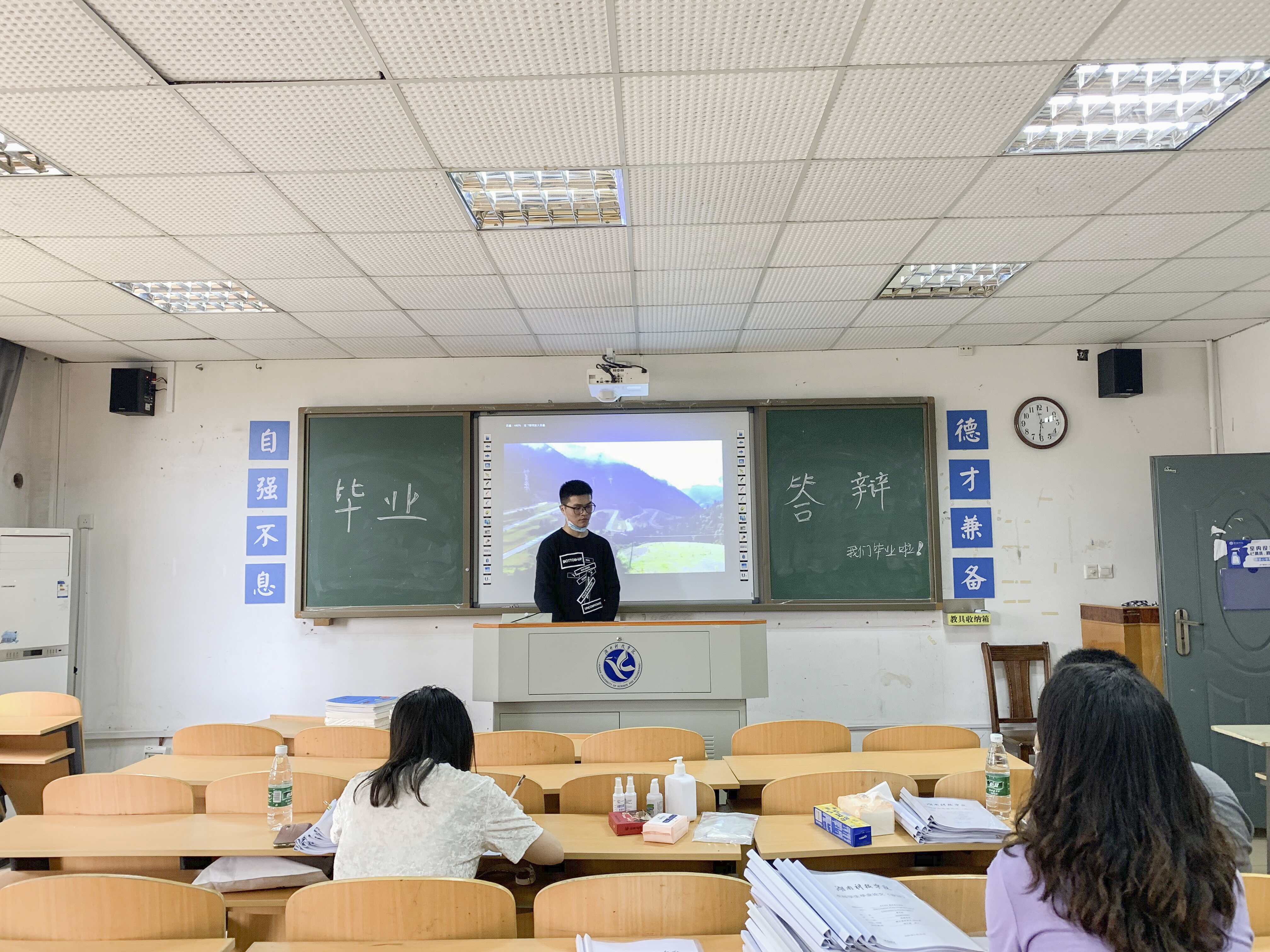 学生在进行线下毕业答辩