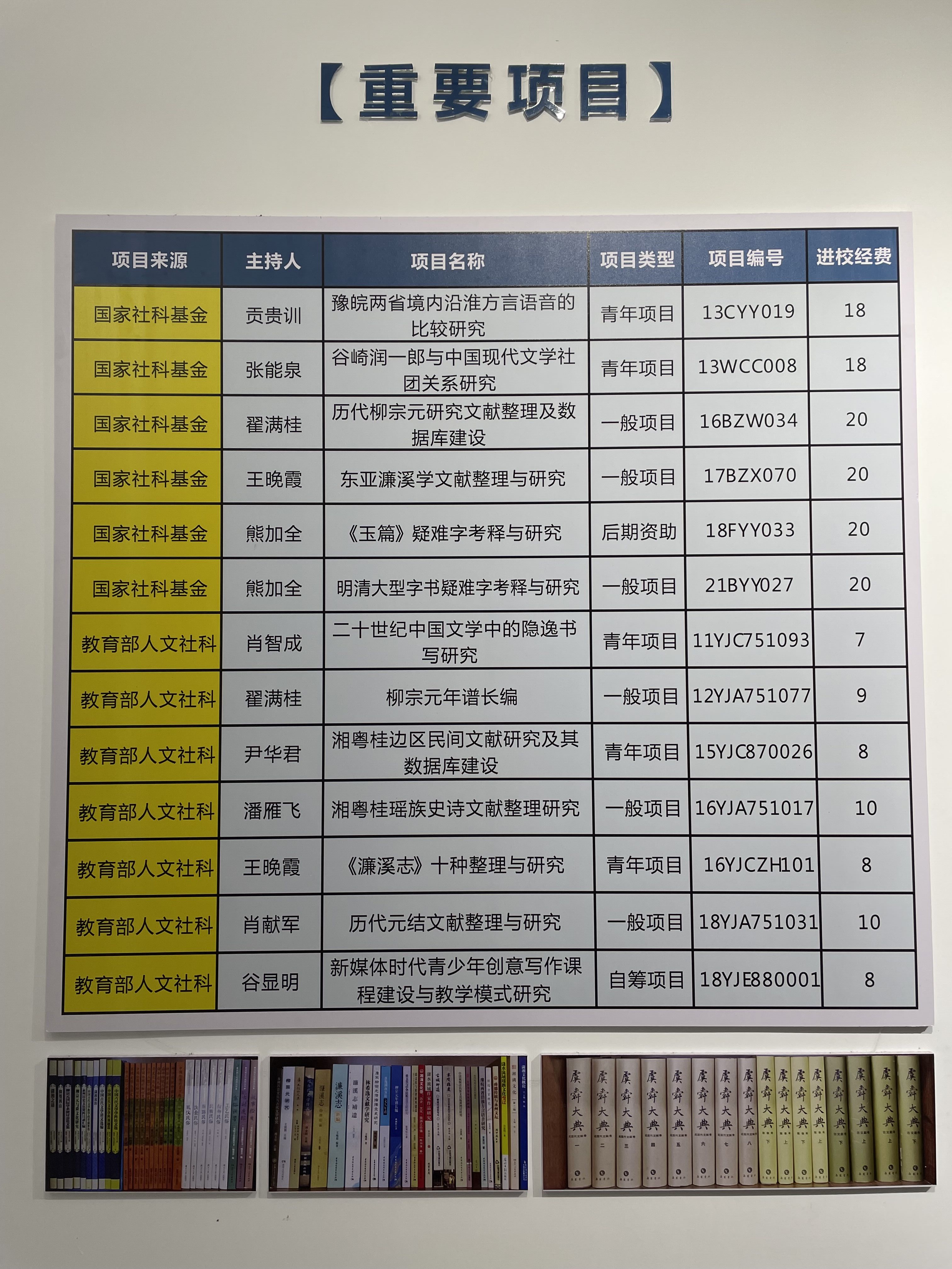近五年来,学院教师主持国家社科基金课题5项,教育部和国家语委课题6项,湖南省社科基金重大、重点课题40余项,教师的成果还获得省级社科成果奖、教学成果奖多项。雄厚的师资力量为学生培养提供了保障,是学生成长成才的坚强后盾。