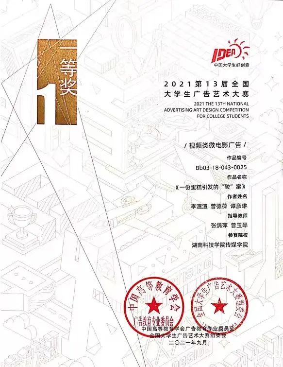 学院构建了“文化+实践+竞赛”的育人模式,文化育人、实践育人、竞赛育人成为学院的特色和亮点。近年来,学生获省级以上竞赛奖励200多项。其中,中国“互联网+”大学生创新创业大赛获金奖1项(实现省内二本院校该赛事金奖零的突破)、铜奖1项;获教育部首届全国高校网络宣传思想教育优秀作品一等奖1项;大广赛获国家一、二、三等奖及省级奖等90多项;全国数字艺术大赛二等奖以上20多项;全国“创青春•挑战杯”创业大赛金奖1项、银奖2项,荣获湖南省“互联网+”大学生创新创业大赛一等奖1项、湖南省大学生艺术展视频类一等奖2项、湖南省第4届大学生公益广告大赛视频类作品一等奖1项;创新创业项目在第二届中关村人才创客大赛全国总决赛中荣获实践组优秀奖。