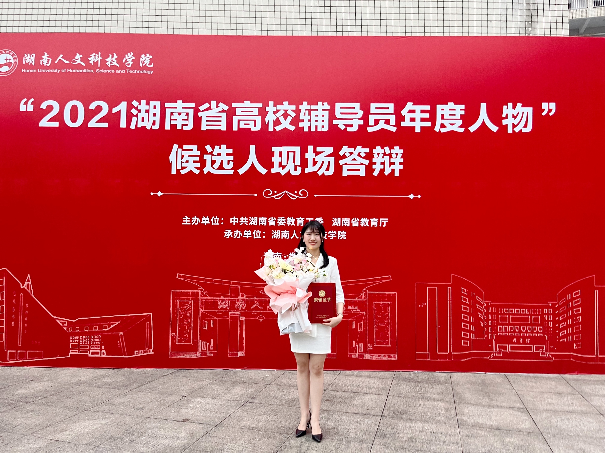 近日,由省委教育工委、省教育厅举办的“2021年湖南省高校辅导员年度人物”答辩评选活动结果揭晓,九州在线网站彭凡思以《“凡”心所向,当学生身边的“小红书”》为主题,针对学生的思想政治教育工作,分享了她的育人目标、育人思路和育人实效。凭借其扎实的理论功底、丰富的实践经验和良好的心理素质,获得了评委们的高度肯定,荣获“2021湖南省高校辅导员年度人物”。