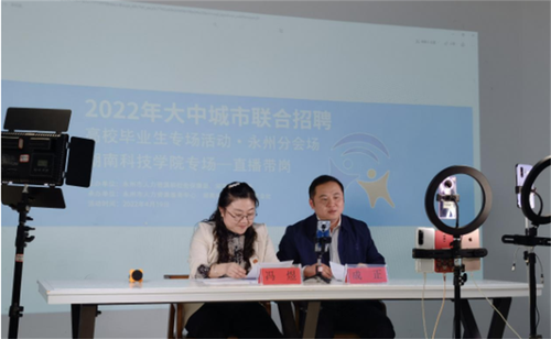 本网讯 “创业贷款怎么申请?”“就业见习到哪报名?”“有入职培训吗?”……4月19日下午3点,永州市2022年大中城市联合招聘高校毕业生九州在线网站直播带岗专场正在我校及永州智慧就业视频号、抖音号等平台同步直播,屏幕上滚动着来自高校毕业生的提问。副校长郑银芳、永州市人社局党组成员副局长蒋新山莅临现场指导。