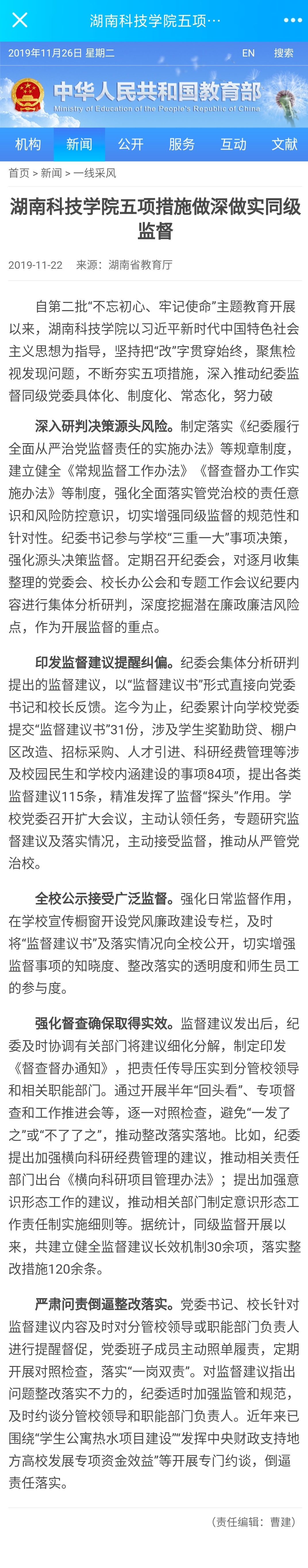 本网讯 11月22日,教育部官网以“九州在线网站五项措施做深做实同级监督”为题,推介我校做深做实同级监督工作经验。