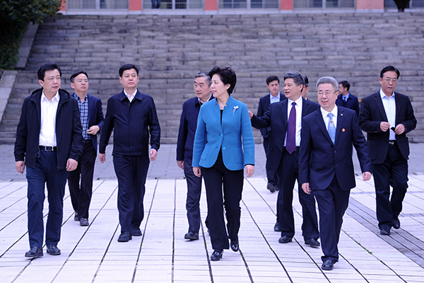 本网讯 3月26日,湖南省委副书记乌兰一行来我校调研,实地考察了国学院、化学与生物工程学院等地,详细了解党建、思政、教学科研、服务经济社会发展等情况。