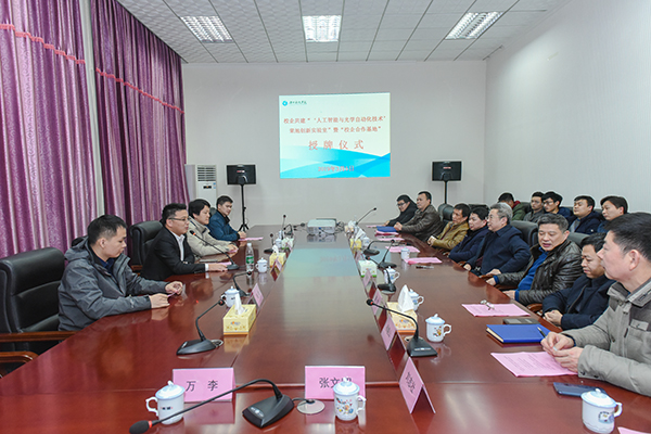 曾宝成在仪式上致辞。他说,当今时代是高新科技迅速发展的时代,未来社会是人工智能大兴盛行的社会,我校与荣旭自动化科技有限公司共建“‘人工智能与光学自动化技术’荣旭创新实验室”,并正式挂牌“校企合作基地”,为学校转型发展和人才培养搭建了新的平台,标志着学校校企合作办学和实验室工作迈向了新台阶,将进一步提高学校教育教学工作水平和人才培养质量,为地方经济发展提供更加坚实、可靠、有效的技术和智力支持。学校将以此次实验室的建立和校企合作基地挂牌为契机,进一步转变发展模式,进一步提升学校的办学水平和人才培养质量,推动学校内涵式发展,为服务经济社会发展做出更大贡献。