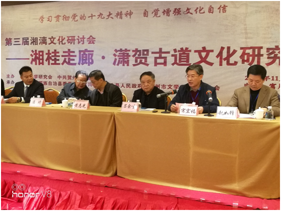研讨会围绕湘桂走廊与潇贺古道发展历程以及与“一带一路”的对接,潇贺古道文化的研究与宣传,潇贺古道文化根脉、潇贺古道历史文化价值等内容进行了热烈研讨,对潇贺古道文化挖掘、传承、保护、开发的思路与对策提出了许多建设性意见和建议。我校陈仲庚、潘雁飞、翟满桂等作了大会发言。