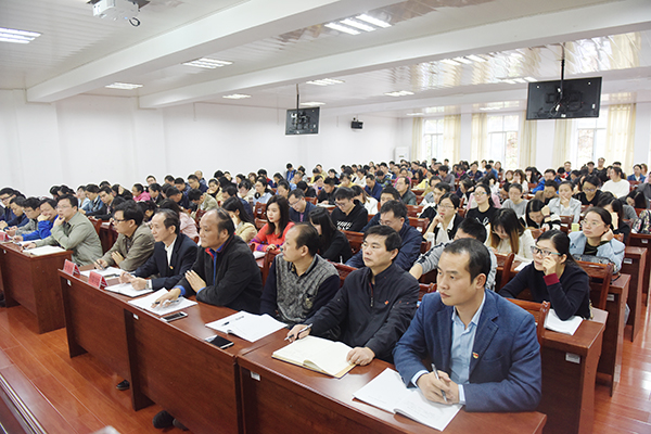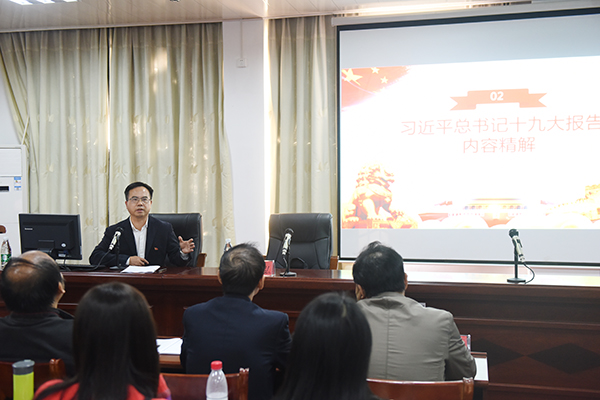 本网讯 10月31日下午,党委书记陈弘以《不忘初心 不懈奋斗》为题,宣讲了党的十九次全国代表大会的意义和十九大报告主要内容,要求全校党员不忘初心、永远跟党走,努力推动高等教育内涵式发展。
