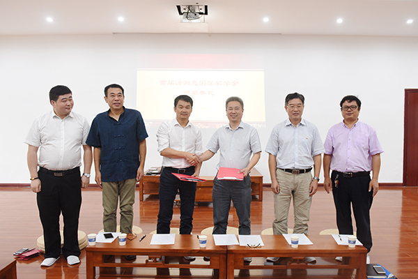本网讯 9月28日是孔子诞辰2568周年纪念日,国学院首届潇湘意国学奖学金颁奖典礼在该院小成堂举行。校长曾宝成、副校长宋宏福等校领导和国学院院长张京华等出席。校长曾宝成与潇湘意文化旅游投资公司签订《关于共同研究、宣传、推广永州历史文化的长期战略合作框架协议书》。潇湘意文化旅游投资股份有限公司董事长王天明为国学院6名本科生唐司妮、刘瑶、易子薇、屈梦君、秦仪、包涵颁发首届潇湘意国学奖学金。