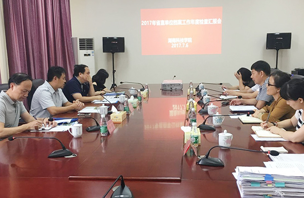 本网讯 7月6日下午,湖南省档案局声像部主任秦清龙一行来到我校,开展档案行政执法检查。