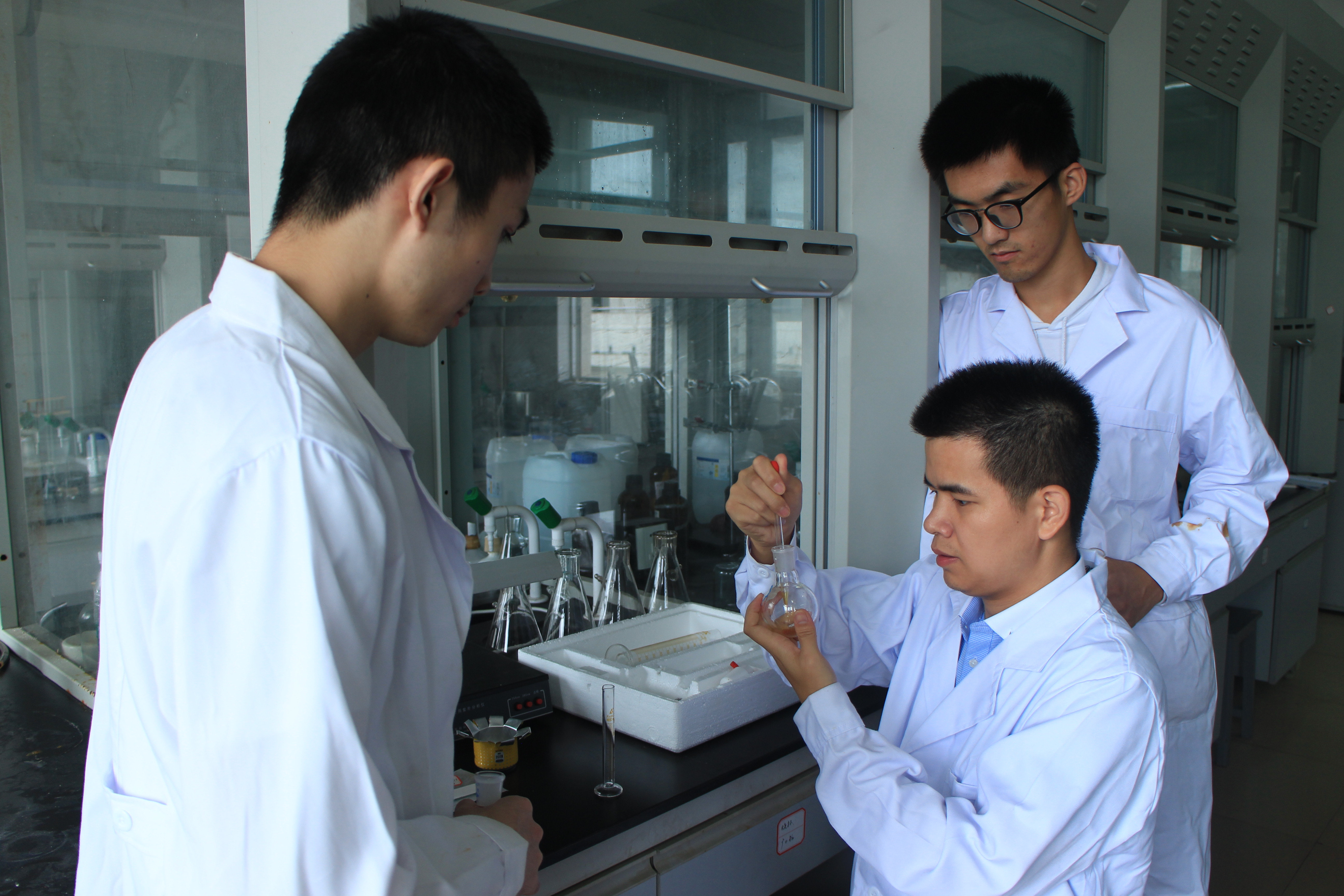2015年,曾飞作为优秀博士引进来校,踏回了从小生活的热土。在校工作虽不到两年,但他却不知疲倦,积极投身科研与教学。当问及一个优秀的科研工作者最重要的品质,曾飞毫不犹豫地说是坚持,他说:“做研究讲究的是延续性,合成出来的有机化合物如果不及时进行处理,可能就会因为天气原因而变质,从而导致一个星期甚至半年的实验都是徒劳,它需要长期的坚持和付出。”除了备课上课,曾飞几乎都呆在实验室里专心研究项目,每天晚上10点多以后才回家休息。化学与生物工程学院贾国凯老师说:“我经常看到曾飞老师在实验室忙碌到很晚,他总是来得特别早,走得特别晚。”努力与坚持正是年纪轻轻的曾飞在科研和教学取得优异成绩的重要原因。