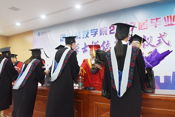本网讯 微笑、拨穗、正冠、授学位,握手,合影……6月7至8日,学校在潇湘大讲堂举行隆重庄严的学士学位授予仪式,校长曾宝成身穿校长袍,为3000多位毕业生授予学位。