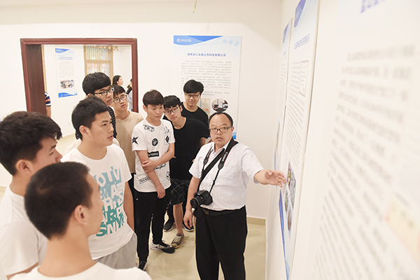 仪式后,市领导,校领导和师生代表共同参观永州市及学校科技成就展览。