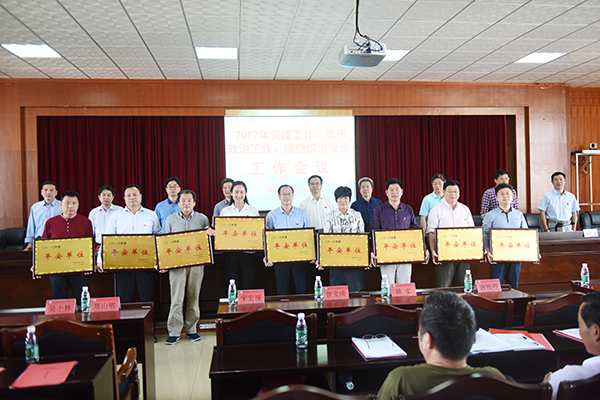 曾宝成宣读《关于2016年度市直机关党支部规范化建设考核验收结果的通报》(永直发[2017]3号)和《关于表彰2016年度综治工作先进单位的决定》(湘科院校字[2017]13号)。