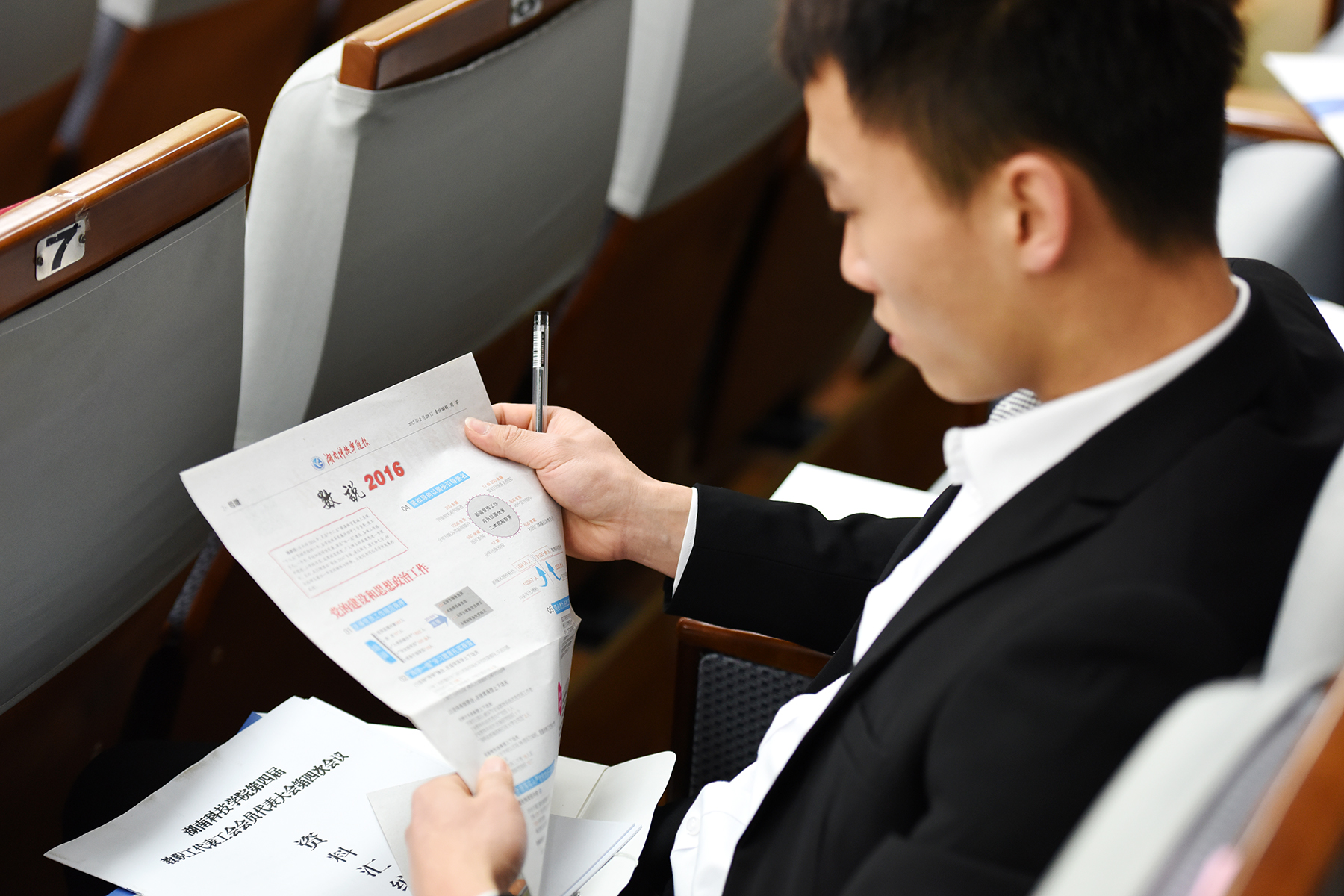 提前到达会场的代表们正在查阅会议资料