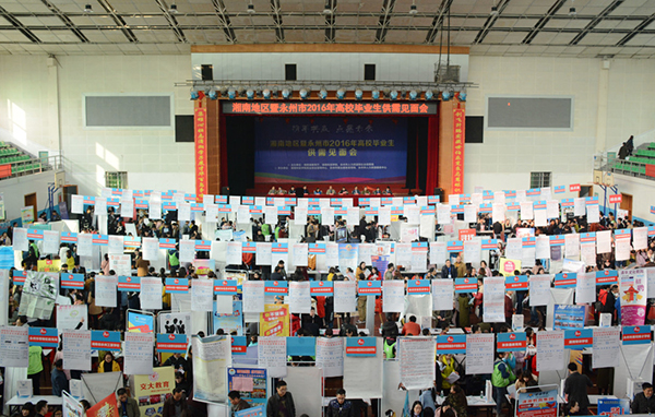 此次供需见面会由湖南省教育厅、我校和永州市人社局联合举办,吸引了湖南本地、广东、广西等全国各地252家用人单位参会,其中86家为外省用人单位,本省外市用人单位62家,永州市用人单位104家,提供就业岗位9200余个,涵盖教育、管理、传媒、电子商务等多个领域。