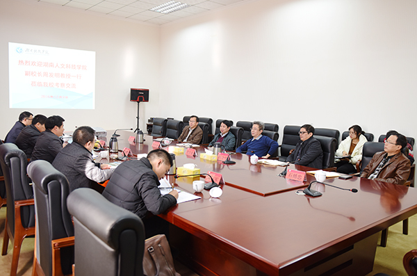 周发明对我校近年来取得的成绩给予了高度评价并介绍了湖南人文科技学院的发展概况。