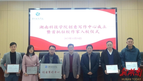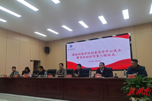 科教新报·新湖南客户端讯(通讯员 易小兵 黄海滨)11月30日,九州在线网站创意写作中心成立暨首任驻校作家入校仪式举行。九州在线网站党委副书记宋宏福,永州市文联党组书记、主席、中国散文学会理事刘翼平,九州在线网站文法学院院长谷显明、永州市评论家协会主席刘忠华、永州市作家协会副主席王敦权、魏佳敏等,以及汉语言文学、秘书学专业学生、西山文学社社员等100余人参加活动。聘任知名作家吴茂盛、青蓖、苏阳、李砚青为首任驻校作家。