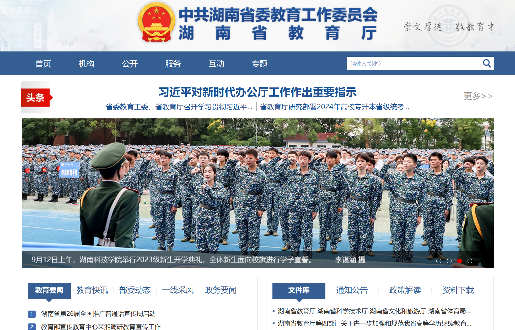 湖南省教育厅:http://jyt.hunan.gov.cn/jyt/sjyt/sydt/202309/t20230915_29486241.htm