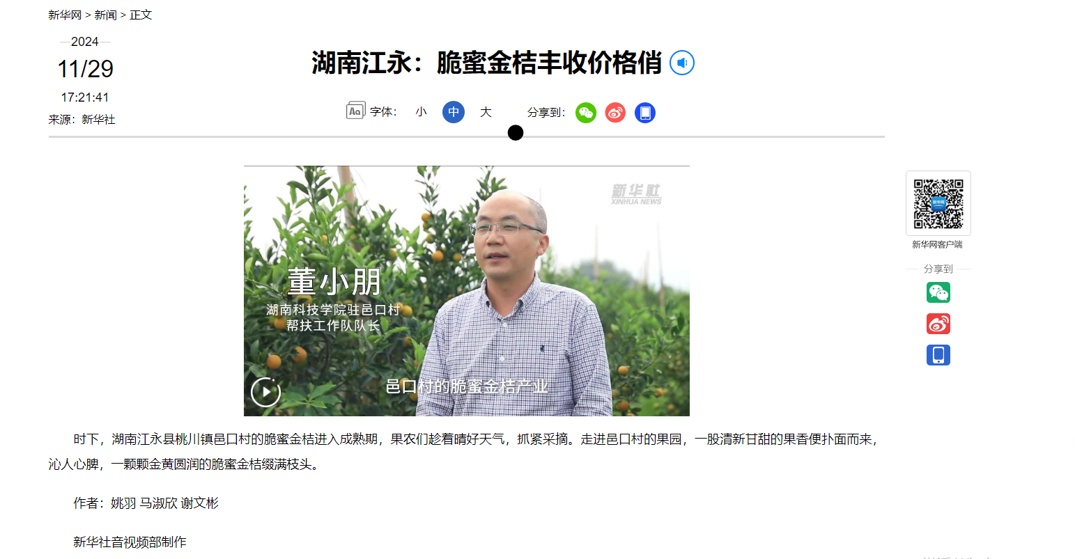 新华社:http://hn.news.cn/20241129/6f3b2a509f154ee996e9a7b18936c88d/c.html