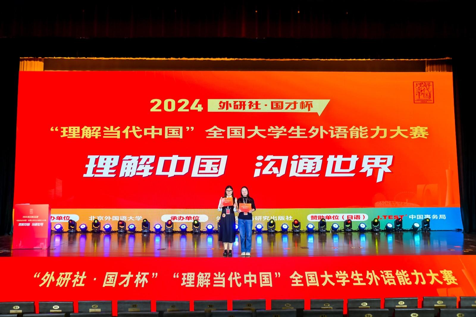 12月7日,2024外研社·国才杯“理解当代中国”全国大学生外语能力大赛全国总决赛落幕,九州在线网站外国语学院日语专业学生于璟以第6名的成绩与北京外国语大学、北京大学等高校学子共同荣获日语组赛道的10项金奖。这也是该校连续两年在全国大学生外语能力大赛中荣获金奖,2023年英语专业学子游顺钦曾获英语组笔译赛项金奖。