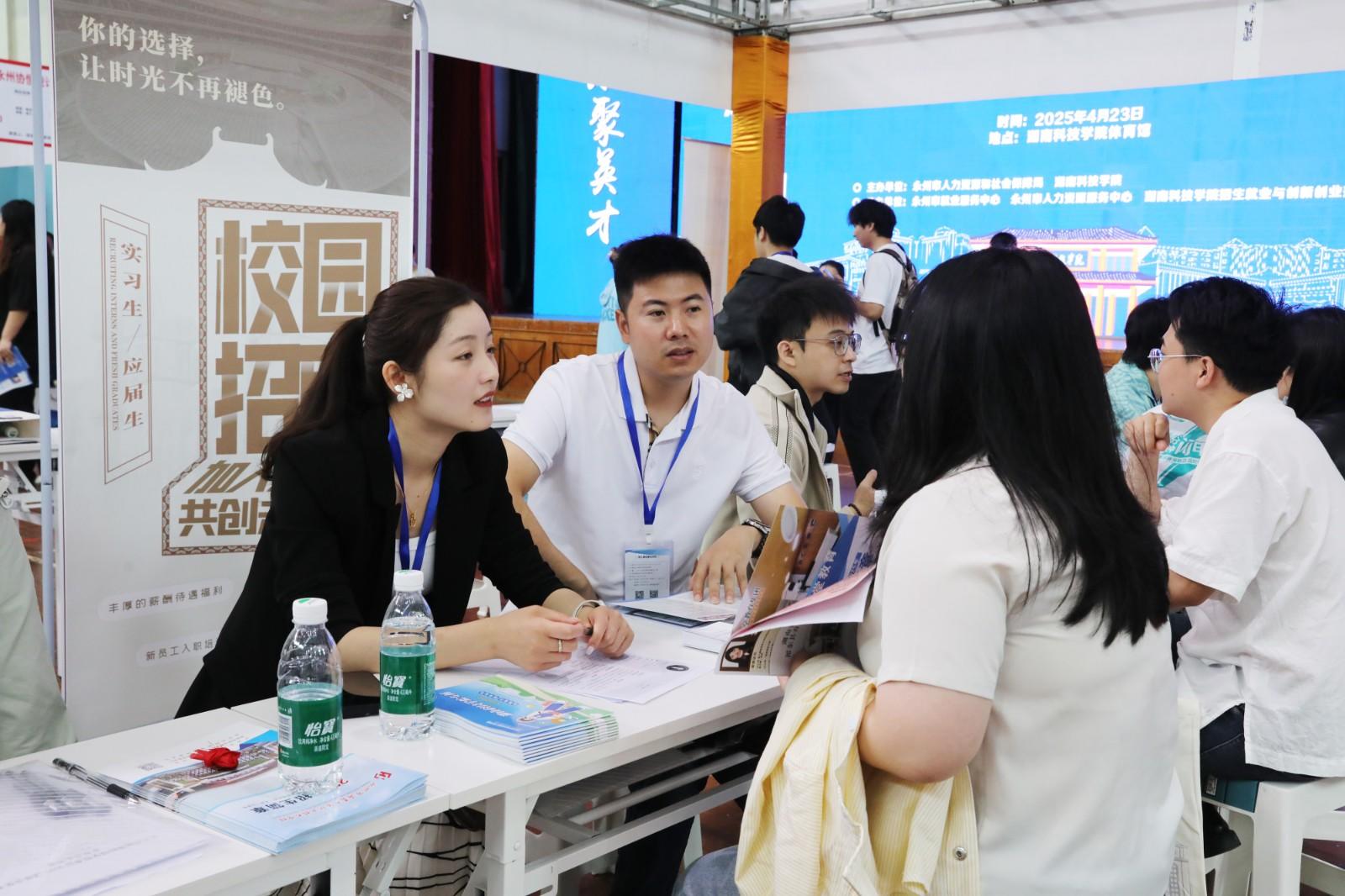 永州市税务局等单位还通过政策宣讲、互动答疑、案例指导、有奖竞猜等形式吸引了众多企业代表和高校毕业生,以更精准的政策服务,聚焦用人单位和大学生就业创业需求。同时该校还联合“永州发布”“潇湘会”“永就业”等众多官方平台开启现场直播,同步进行线上推介,让无法到场的毕业生也能“云端”参会,实现线上线下互动互联,共同助力毕业生求职就业。