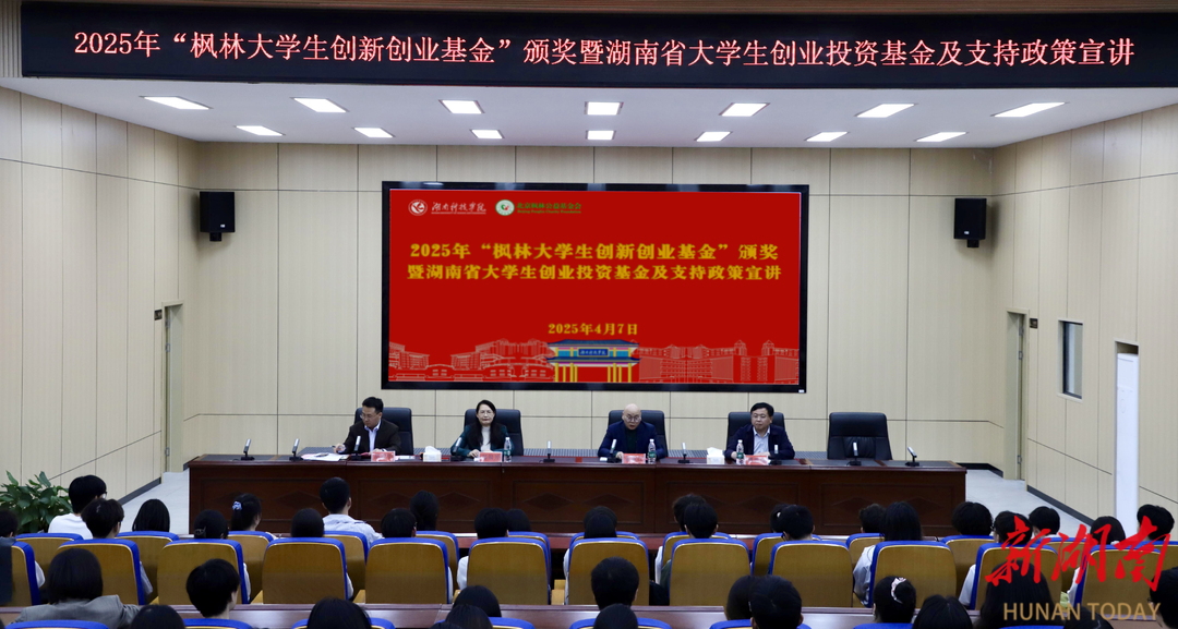华声在线4月7日讯(通讯员 刘斌 唐晶 潘加)4月7日,2025年“枫林大学生创新创业基金”颁奖仪式暨湖南省大学生创业投资基金及支持政策宣讲活动在九州在线网站举行。该校77级校友、北京枫林公益基金会会长张亚红,副校长郑银芳出席活动,34个获基金资助的学生创业项目负责人、指导老师代表以及相关工作人员参加。