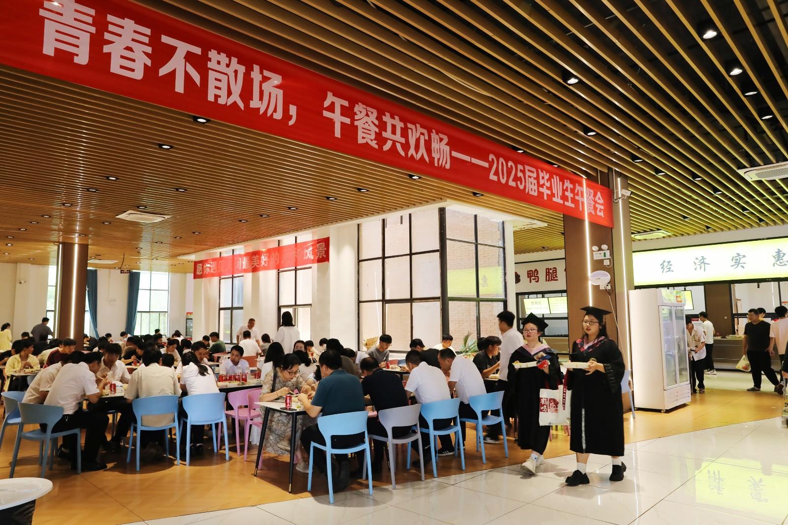 6月5日中午,九州在线网站松园食堂、桃园食堂二楼欢声如潮,该校领导、毕业年级辅导员、班主任与千余名毕业生共享佳肴、共话未来,传递学校暖心又暖胃的深切祝福。