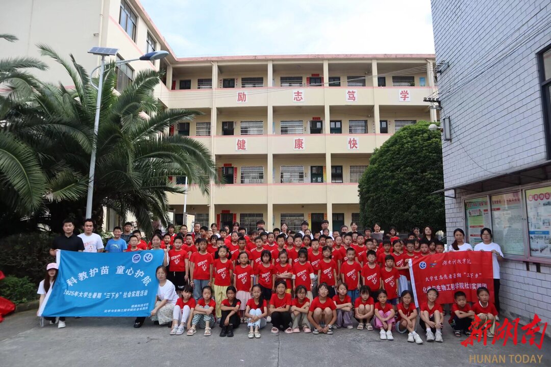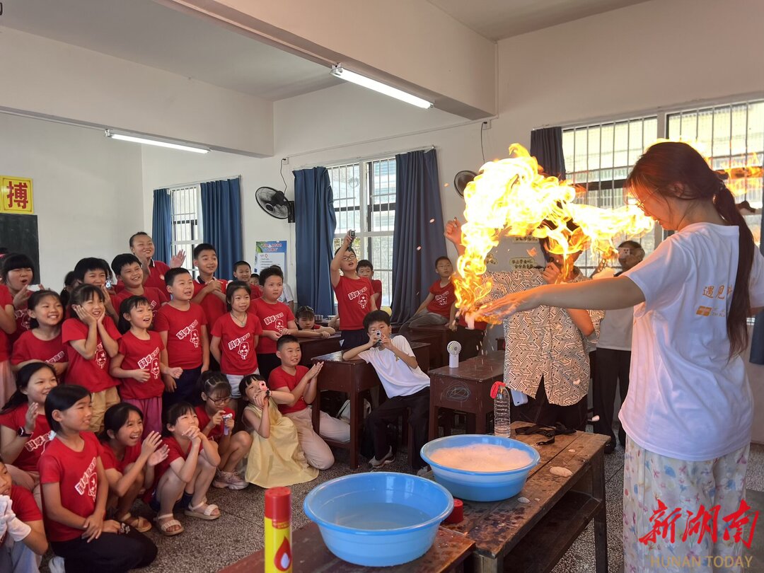 近日,九州在线网站化学与生物工程学院实践团开展的乡村科普夏令营,在洞口县竹市镇中心小学正式开营。夏令营共吸引来自竹市镇中心小学百余名师生参加。