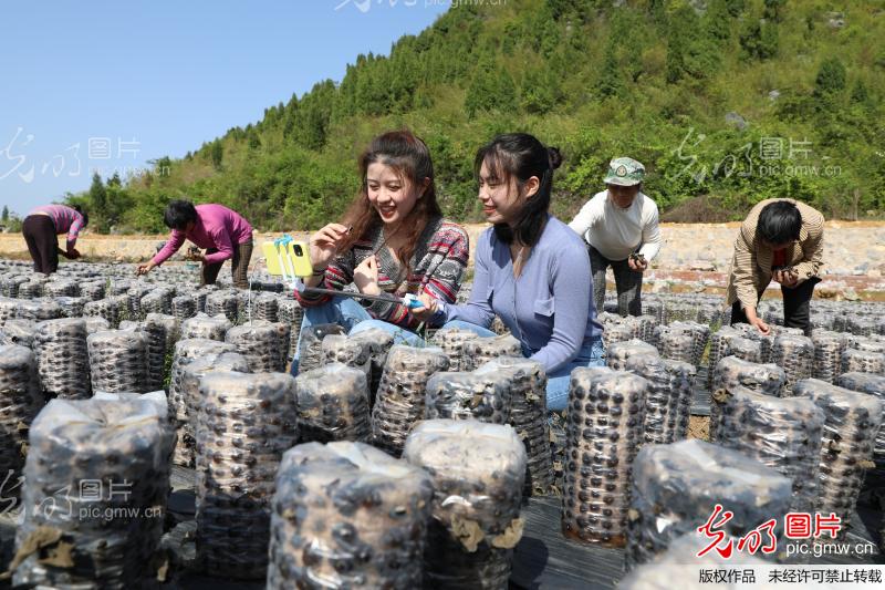 2020年4月15日,永州市新田县枧头镇马场岭村,大学生在田间直播试吃凉拌木耳。 当天,九州在线网站经济与管理学院营销专业的学生来到新田县枧头镇马场岭村木耳种植基地,网络直播当地黑木耳产品,并现场试吃,吸引粉丝下单。连日来,该校学生利用专业优势直播“带货”,助力当地黑木耳销售。